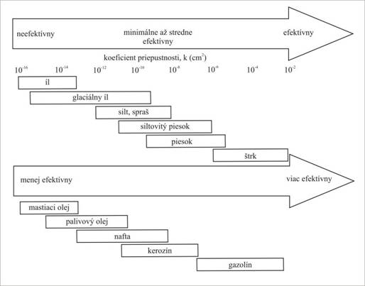 • priepustnosť horninového prostredia – podmieňuje intenzitu, pri ktorej kyslík, resp. iné podporné látky sa môžu dodávať k mikroorganizmom degradujúcim uhľovodíky,