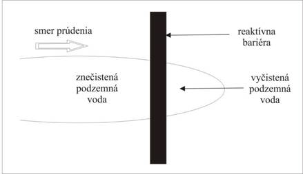 Reaktívne médium rozkladá, sorbuje, vyzráža alebo inak odstraňuje organické látky, kovy, rádionuklidy alebo iné znečisťujúce látky. Bariéry (steny) môžu obsahovať reakčné činidlá na rozklad organických prchavých látok, cheláty na imobilizáciu kovov, živiny a kyslík na podporovanú biodegradáciu alebo iné činidlá (napr. Bakker et al., 2000; Kao et al., 2001; Gibert et al., 2007; Meggyes a Simon, 2000).