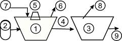 Vysvetlivky: 1 – bioreaktor, 2 – roztok so živinami, 3 – sedimentačné zariadenie, 4 – ošetrený kal, 5 – mixér a aerátor, 6 – plyn ošetrovaný absorpciou uhlíka, spaľovaním alebo biofiltráciou, 7 – znečistená zemina, 8 – tekutina, 9 – pevné častice.