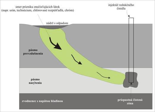deštruovať kontaminant. Vytvorená redukčná bariéra s obsahom dvojmocného