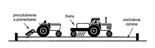 Technológie, ktoré zahŕňajú biologické odstraňovanie ropných produktov z prostredia kontaminovanej pôdy, sú dnes úspešne zavedené a mnohé sa komerčne používajú vo veľkom meradle. Počas 70. rokov minulého storočia, keď environmentálne riziká spojené s nekontrolovanou likvidáciou boli zrejmé a stanovili sa environmentálne regulácie v Severnej Amerike a Európe (zamerané na minimalizáciu rizika kontaminácie podzemných vôd a ovzdušia), obrábanie získalo svoju popularitu. Táto „low-tech“ biologická metóda čistenia spočíva v riadenej aplikácii a rozložení viac-menej definovaného, organicky bioprístupného odpadu na povrch pôdy a jeho zapracovaní do povrchovej zóny pôdy (Genouw et al. 1994). Jednoduchá schéma obrábania je uvedená na obr. 4.1.24.