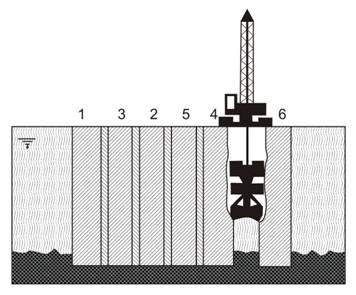 Obr. 4.1.17. Proces inštalácie podzemnej tesniacej steny.