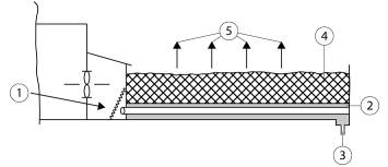 Vysvetlivky: 1 – znečistený vzduch, 2 – štrková vrstva, 3 – drenáž, 4 – filtračný materiál, 5 – vyčistený vzduch.