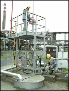 Obr. 5.1.30. Bratislava, areál Slovnaftu, a.s. – nastavovanie zberného valca na ropné látky vo vrte na vnútornej línii hydraulickej clony (archív GEOtest Bratislava, s. r. o.).
