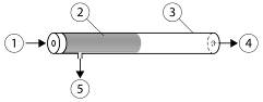 Vysvetlivky: 1 – znečistený plyn, 2 – membránový modul, 3 – krycie potrubie, 4 – koncentrát, 5 – vyčistený plyn.